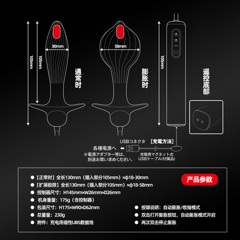 【wildone】充气肛塞(送:后庭润滑液)#日本前列腺按摩肛塞后庭开发另类扩肛器肛门性用品gay男情趣跳蛋